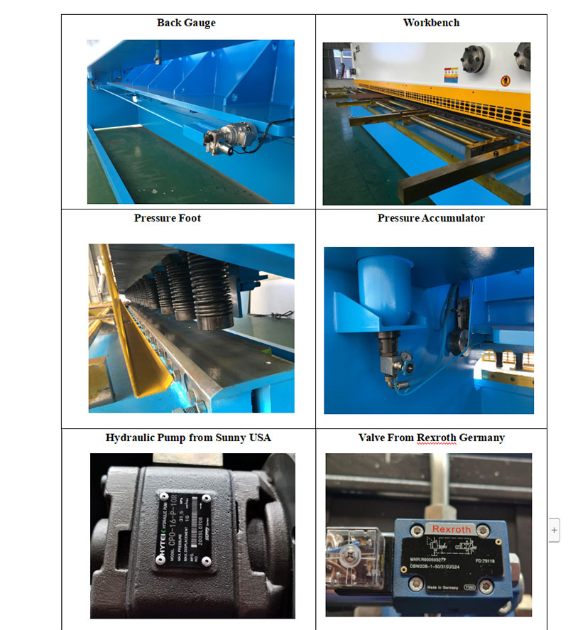 4. Bıçak kirişlerinin hareketli yörüngesi, alt bıçağın destek yüzeyine doğru eğimlidir, böylece ince kesme yüzeyi elde edebilirsiniz. Üst bıçağın kaldırma vidaları, malzemenin kesilmiş kenarındaki "paçavra" veya "çapaklanmayı" en aza indirmek için ince bir ayar sağlar. Tutma tertibatı kelebek yayları benimser. Tutma plakasının tutma düzeneğinde kaymaz topuk bloğu bulunmaktadır. Basınç daha büyüktür, ancak sac yüzeyine zarar vermez.